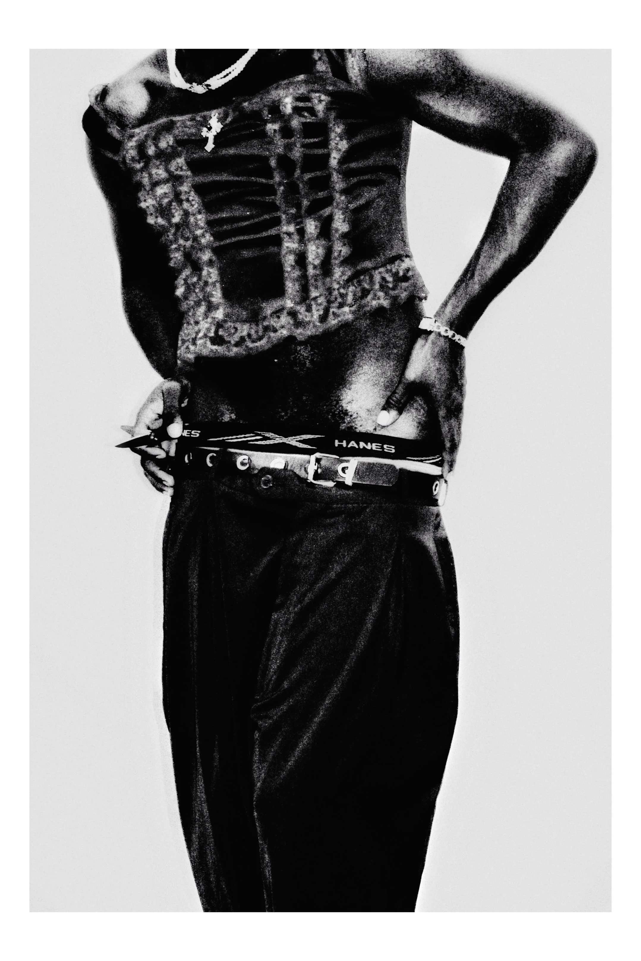 The black corset is an emblem of structure and protection. Whenever I put it on, I feel as though I am representing both the past and the future. I believe that when it comes to fashion, there should never be any limitations — everyone should be free to express themselves without needing a permission slip or approval.